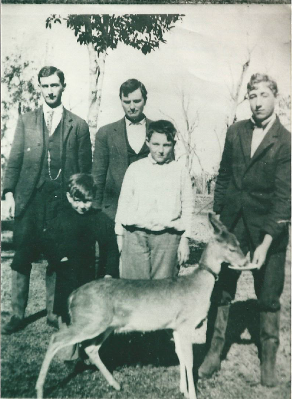 Man feeding the deer: Don Rimmer. Little boy was Doris Hankins with his dad in the middle, Levi Hankins. Others unidentified.