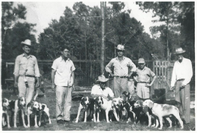 Left to right: Pierce Phelp, Johnny Burt, ? , Briten Sewell, Johnny Meador and John Chenault, bobcat hunters