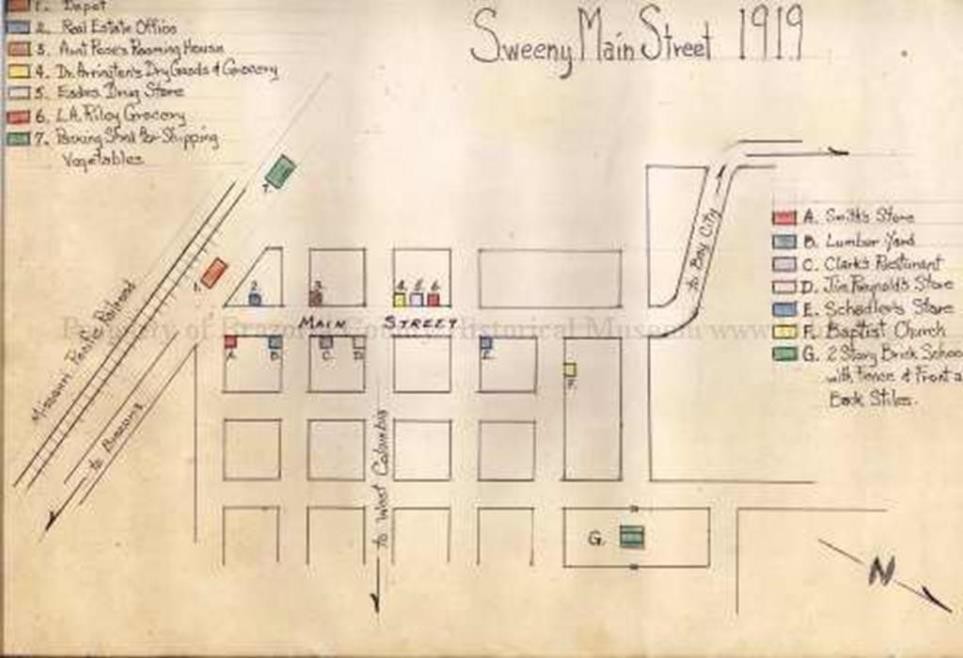 Main Street, Sweeny Texas, 1919 submitted by Clyde McKinney. Image courtesy of the Brazoria County Historical Museum